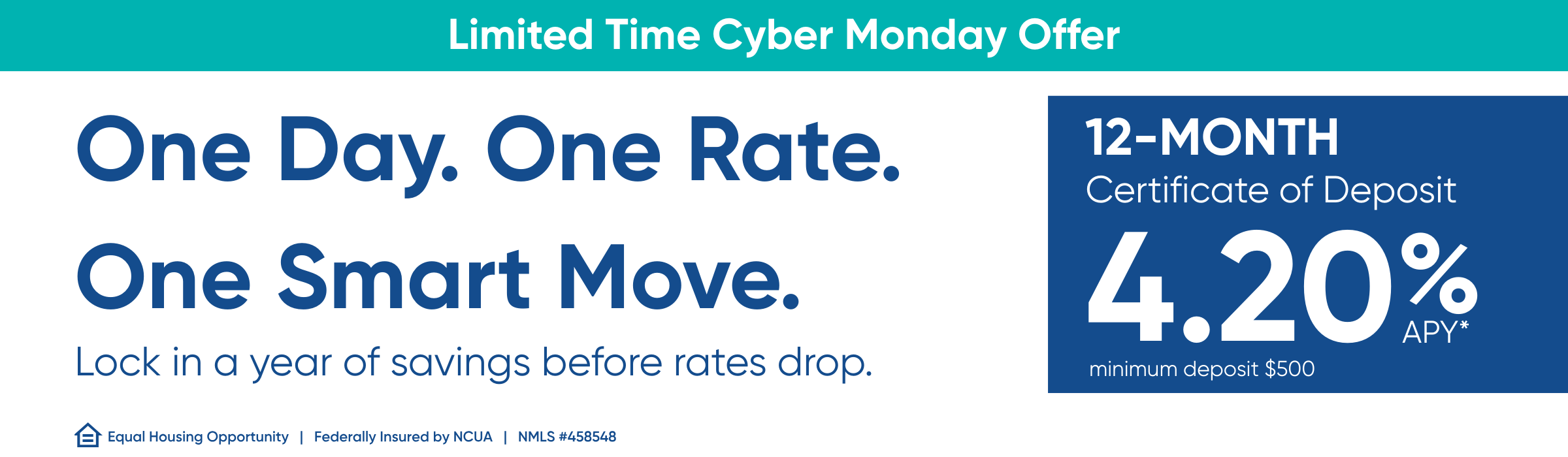 *APY = Annual Percentage Yield. 12-month CD at 4.20% APY is available on 12/1/2025 only and is valid for accounts opened online only. The minimum deposit to open is $500. When opening a Share Certificate of Deposit (CD) online, a maximum deposit of $250,000 via ACH transfers apply. This offer is exclusively for new funds that are not currently on deposit at Connex. At maturity, the 12-month CD rolls over to a standard 12-month CD at the current rate. Fees may reduce earnings. Terms and conditions apply.